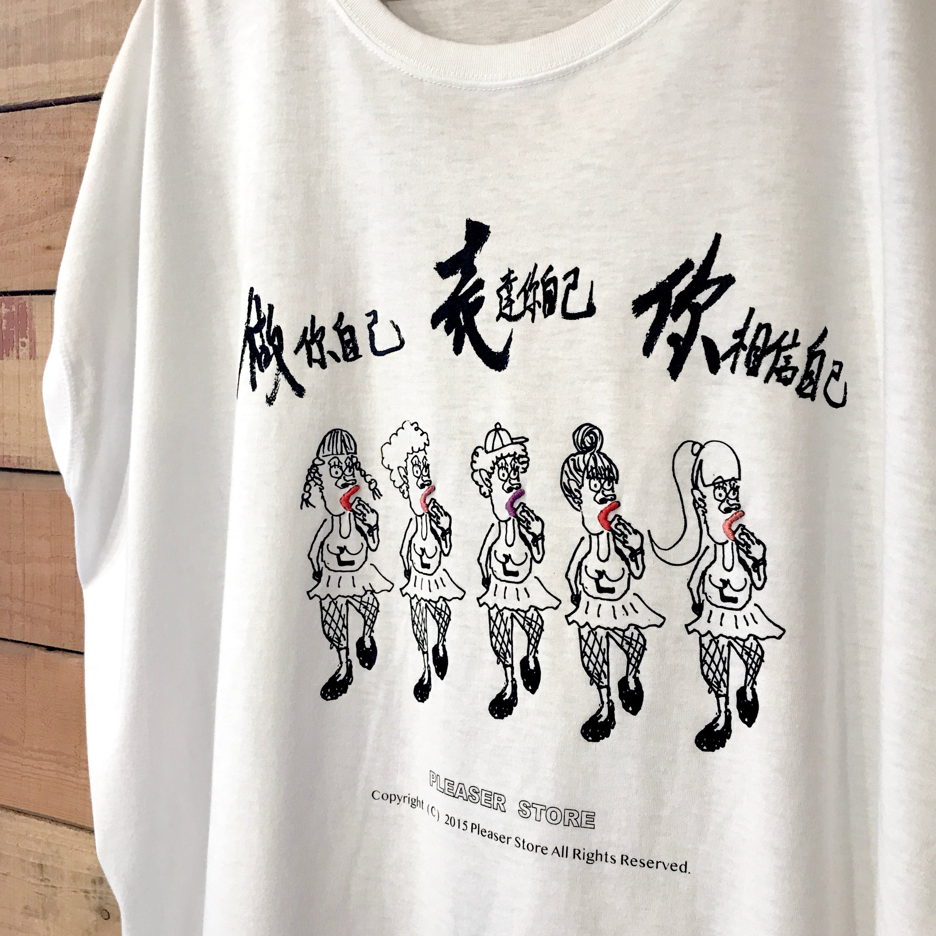 「5人組」オリジナルイラスト 手刺繍 レディースワイドTシャツ