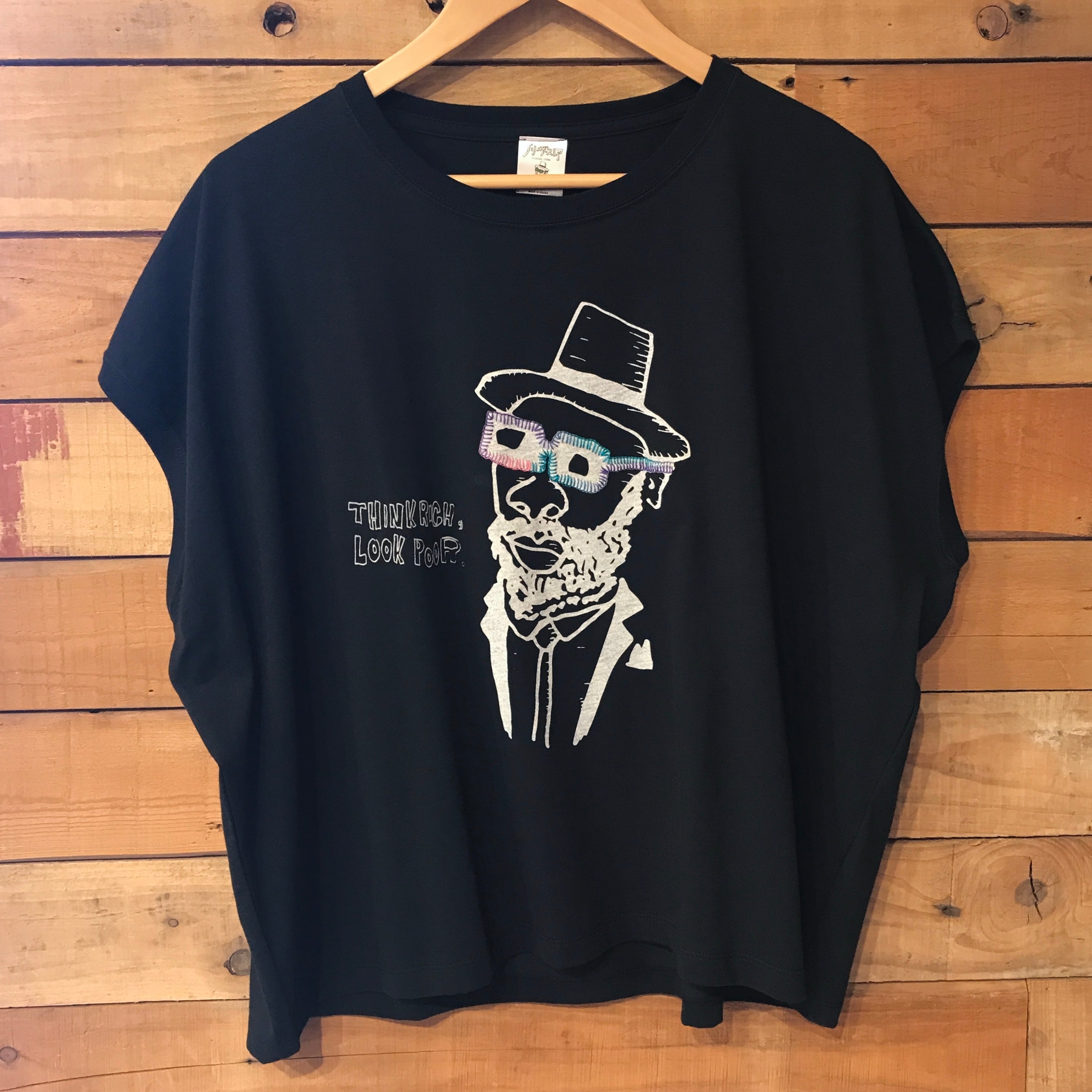 「THINK RICH, LOOK POOR 」オリジナルイラスト 手刺繍 レディースワイドTシャツ