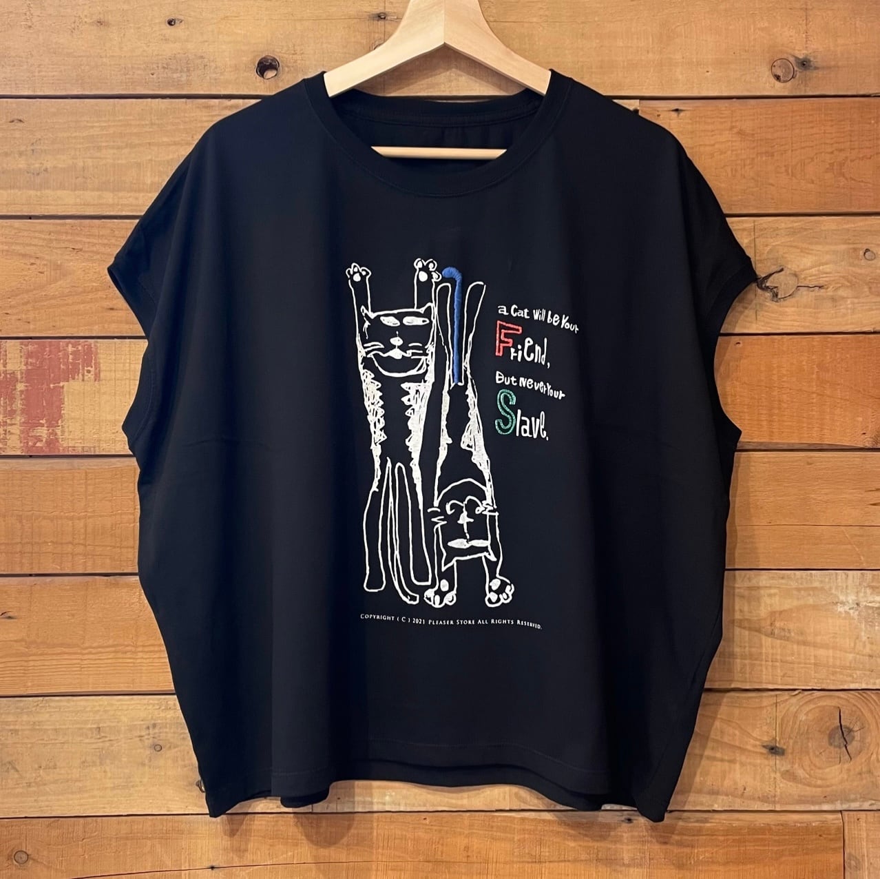 『ネコ』オリジナルイラスト レディースワイド 手刺繍Tシャツ