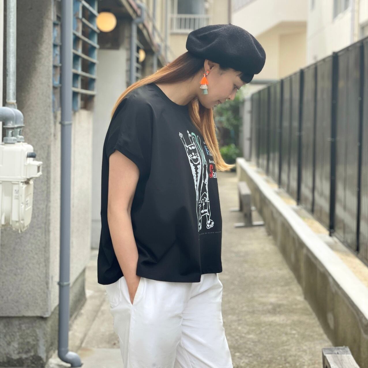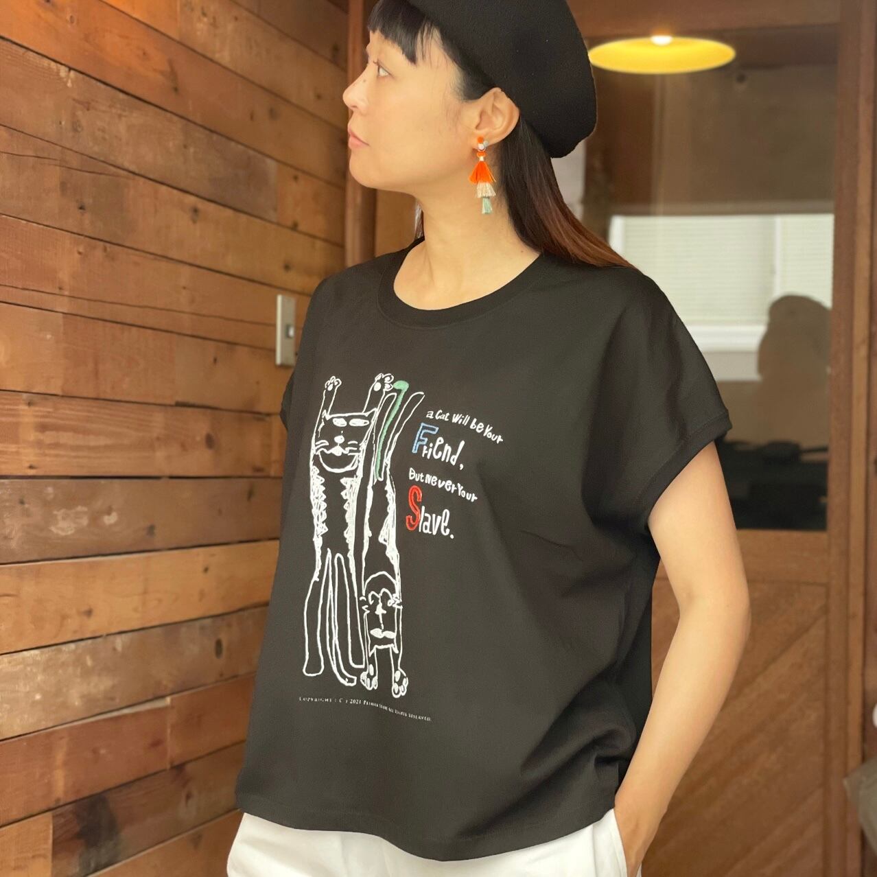 ネコのイラストが印刷されたPOPで可愛いレディースTシャツです。